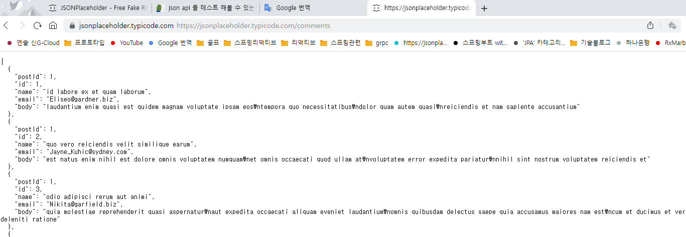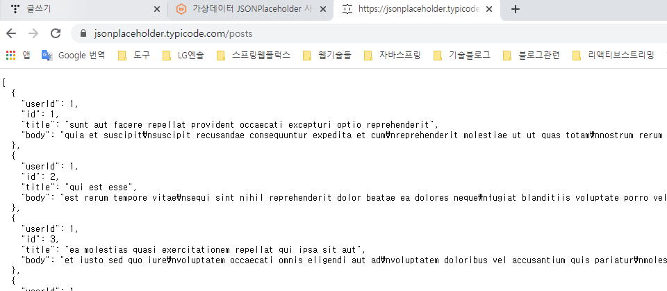 Json 무료 가상 Rest API 서버 - JSONPlaceholder