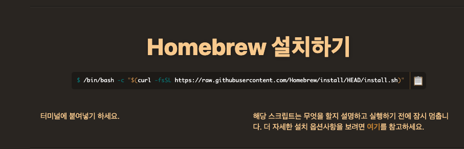 * macOS 용 패키지 관리자 Homebre 를 설치한다. 요 녀석 설치시에도 몇 번 헤멨으니 그리 간단하지 않다.