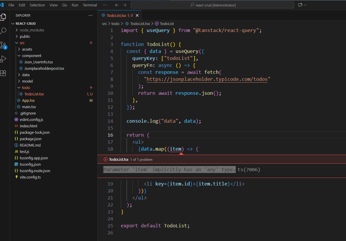 Parameter 'item' implicitly has an 'any' type.