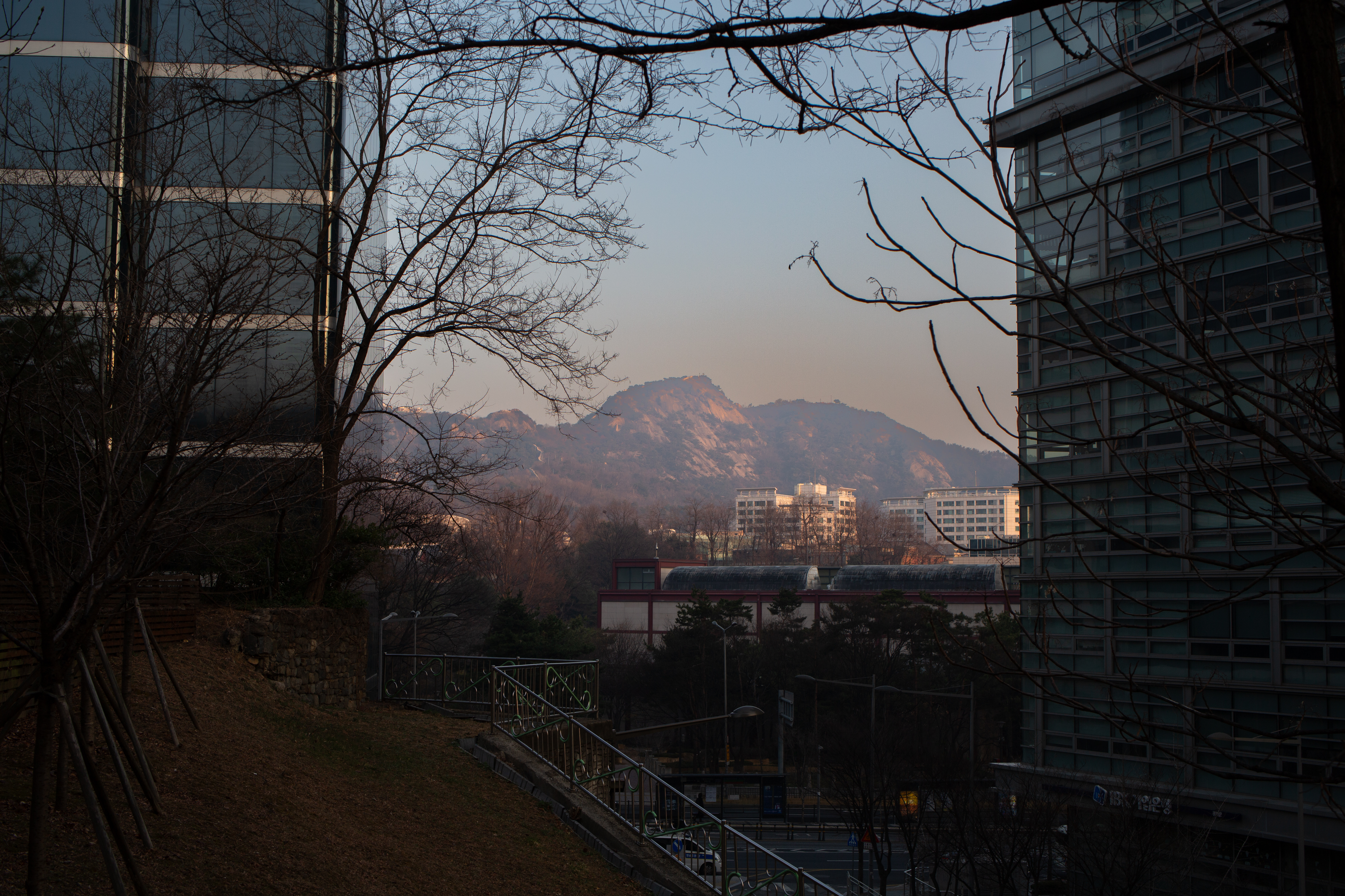 도심 빌딩 사이사이로 보이는 산. 이런 풍경의 도시가 지구에 있을까? 하는 생각이 무심코 든다.